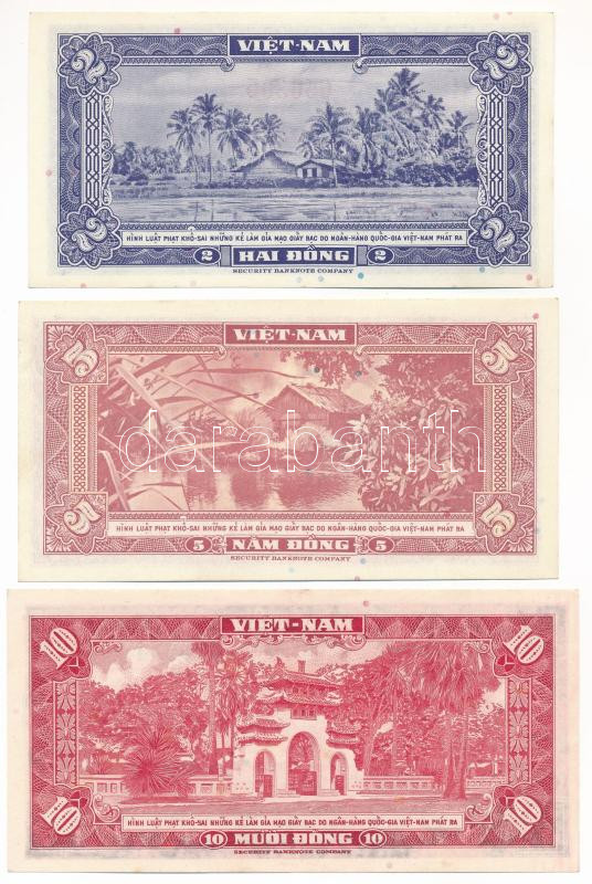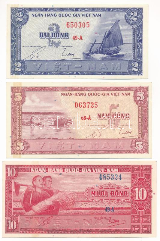 Vietnam / South Vietnam 1955. 2 Dong + 5 Dong + 10 Dong C:UNC-XF