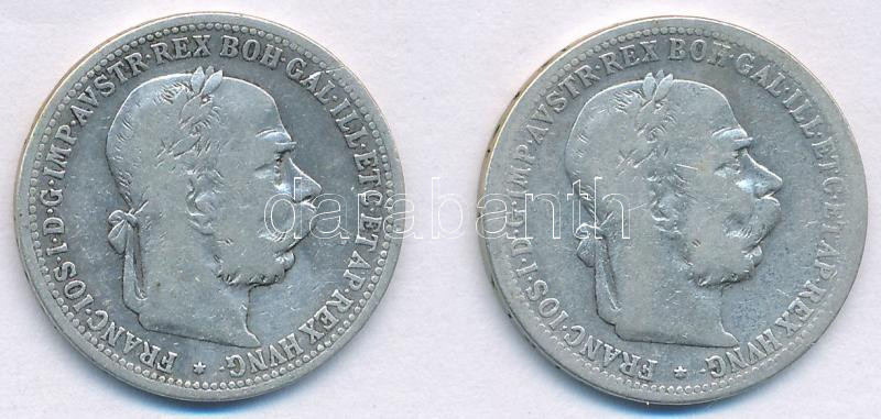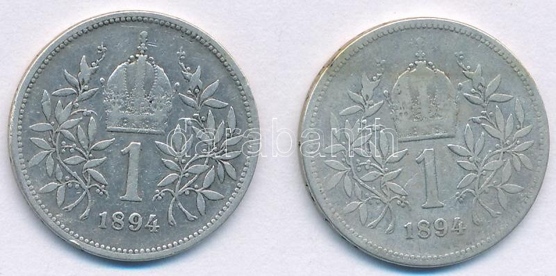 Ausztria 1894. 1K Ag "Ferenc József" (2x) T:F kis ph., patina Austria 1894. 1 Corona Ag "Franz Joseph" (2x) C:F small edge error, patina