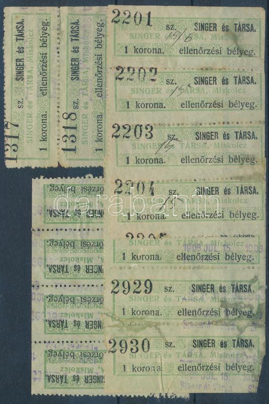 Singer és társa ellenőrzési bélyeg 1 K (13x) https://www.darabanth.com/de/472-Fernauktion/472.0/Philatelie-und-Postgeschichte-Ungarn/Paraphilatelie~1000019/Singer-es-tarsa-ellenorzesi-belyeg-1-K-13x~II3196239