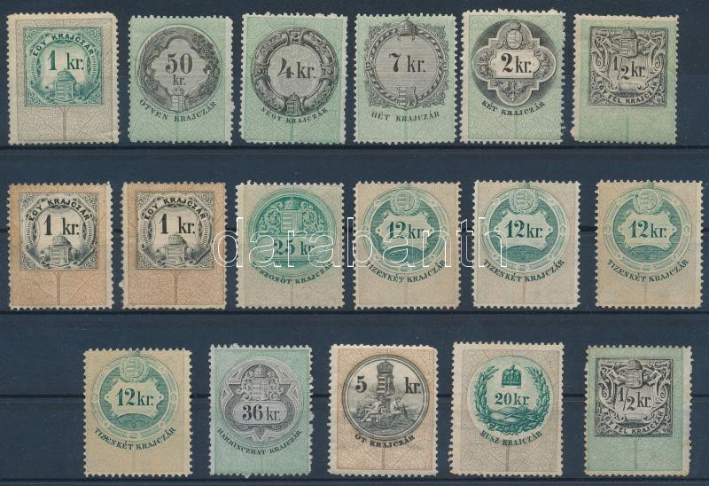 Beschreibung: 17 db régi használatlan okmánybélyeg stecklapon