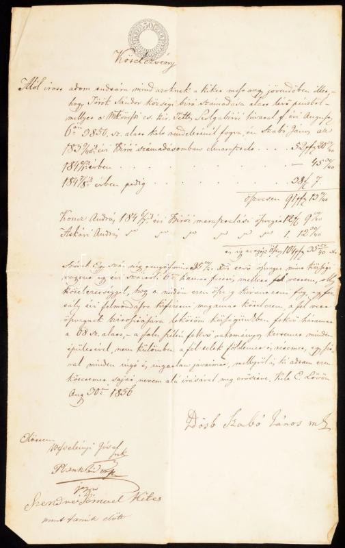 1856, 1866 Lővői kötelezvény 30kr szignettával + 1866 Badeni okmány 3K... https://www.darabanth.com/de/472-Fernauktion/472.0/Philatelie-und-Postgeschichte-Ungarn/Stempelmarken~1000020/1856-1866-Lovoi-kotelezveny-30kr-szignettaval-plus-1866-Badeni-okmany-3K-szignettaval~II3200512