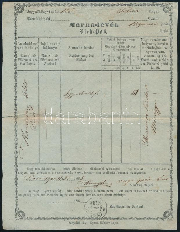 1865 Marhalevél Dets bélyegzéssel https://www.darabanth.com/de/472-Fernauktion/472.0/Philatelie-und-Postgeschichte-Ungarn/Stempelmarken~1000020/1865-Marhalevel-Dets-belyegzessel~II3200598