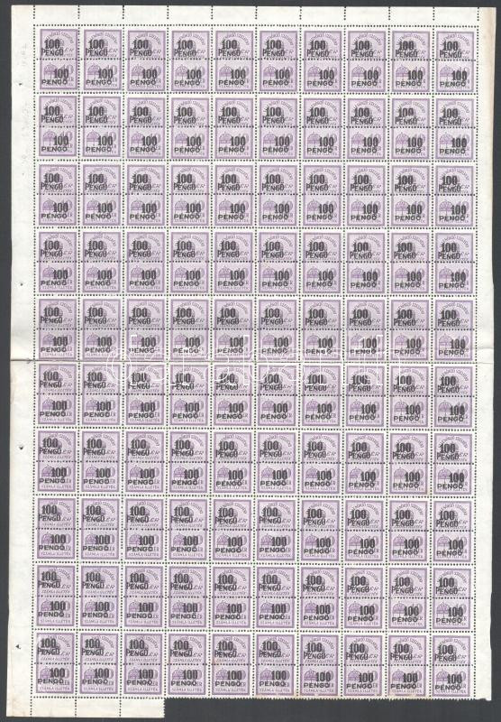 Beschreibung: Számlailleték bélyeg 1945 100P 100-as teljes ív (150.000)
