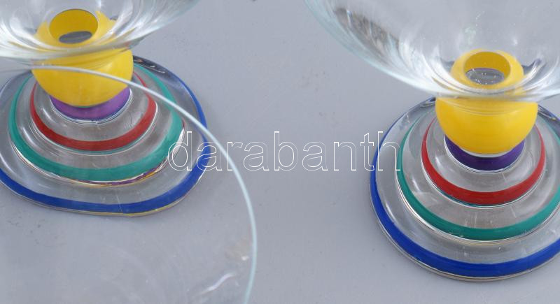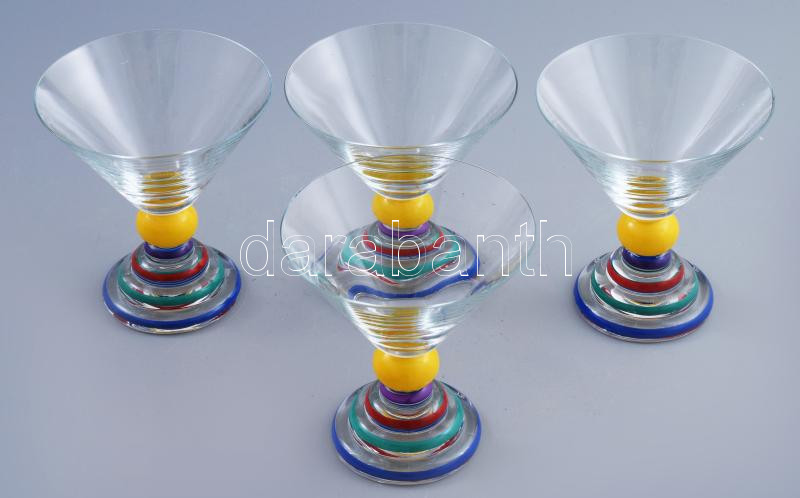 Beschreibung: Anne Nilsson (1953-) 4 darab "Clown" coctail pohár. Festett üveg, kis kopással, jelzés nélkül, m: 12 cm