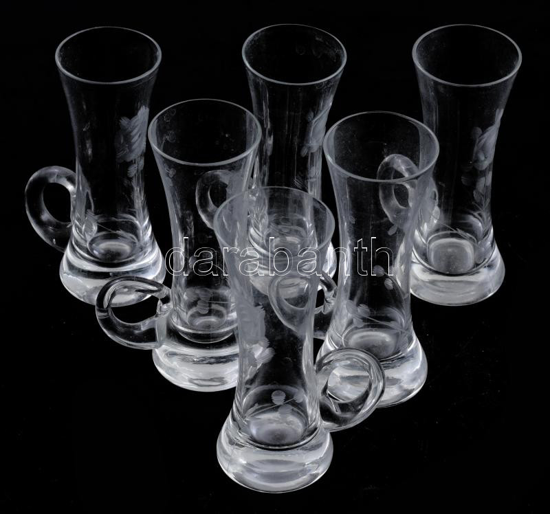 Beschreibung: Antik csiszolt mintás pálinkáspohár garnitúra, 6 darab, m: 10,5 cm
