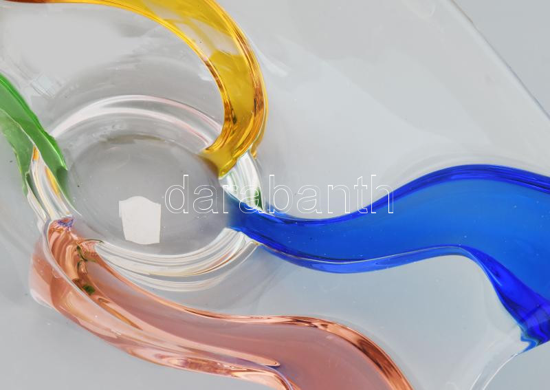 Beschreibung: Chřibská cseh üveg asztaldísz. Terv.: Josep Hospodka. Anyagában színezett, jelzés nélkül, kis kopással, d: 17 cm