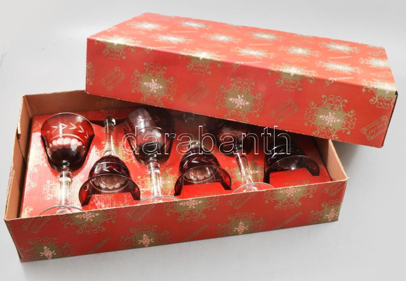 Beschreibung: Dúsan csiszolt kristály vörös borospohár szett, 6 darab, original dobozban, hibátlan, m: 20,5 cm