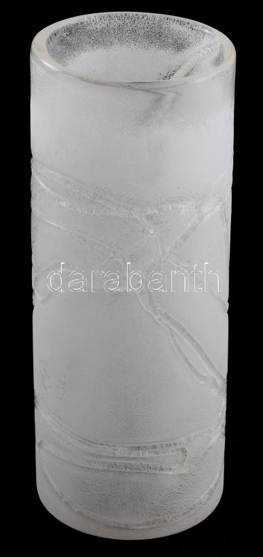 Beschreibung: Finn iparművész "fagyott üveg" váza. Kézzel formált, savmaratott hutaüveg, jelzés nélkül, hibátlan, m: 30 cm