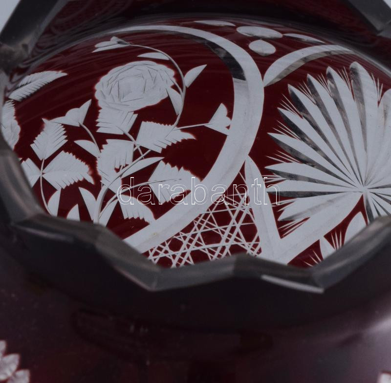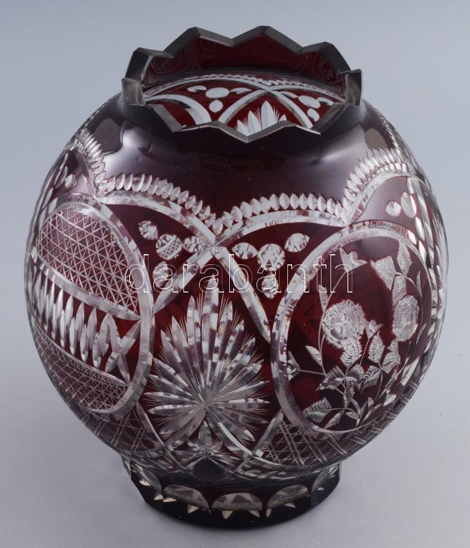 Beschreibung: Gazdag csiszolású bordó gömbváza, m: 21,5 cm