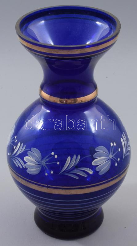 Királykék üvegváza. Jelzés nélkül, kis kopással, m: 24,5 cm https://www.darabanth.com/de/472-Fernauktion/472.0/Porzellan-Keramik-Glass/Glaser~1000008/Kiralykek-uvegvaza-Jelzes-nelkul-kis-kopassal-m-24-5-cm~II3159739