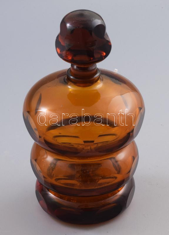 Likőrös flaska. Borostyánüveg csiszolt üveg dugóval 20 cm https://www.darabanth.com/de/472-Fernauktion/472.0/Porzellan-Keramik-Glass/Glaser~1000008/Likoros-flaska-Borostyanuveg-csiszolt-uveg-dugoval-20-cm~II3197829