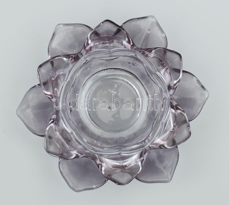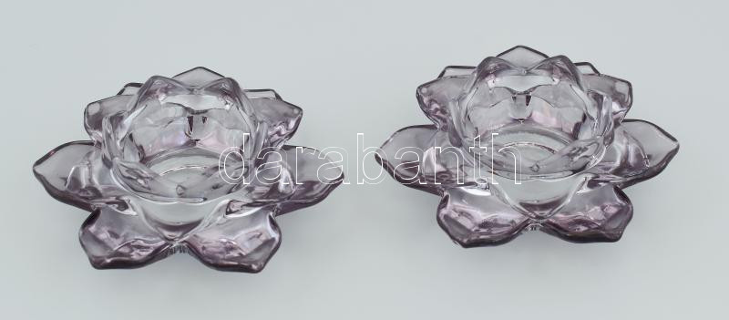 Beschreibung: Neodymium üveg rózsa alakú mécsestartó pár. Jelzés nélkül, d: 12 cm