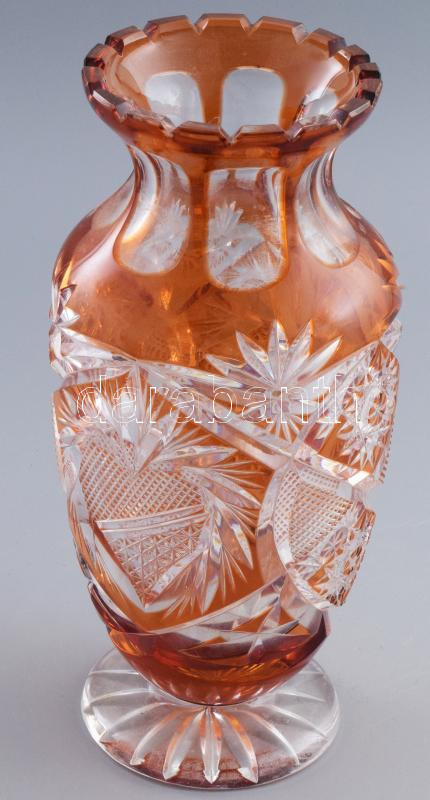 Rákszínű pácolású, feltehetően Ajka kristály váza. Jelzés nélkül, m: 2... https://www.darabanth.com/de/472-Fernauktion/472.0/Porzellan-Keramik-Glass/Glaser~1000008/Rakszinu-pacolasu-feltehetoen-Ajka-kristaly-vaza-Jelzes-nelkul-m-27-cm~II3193689