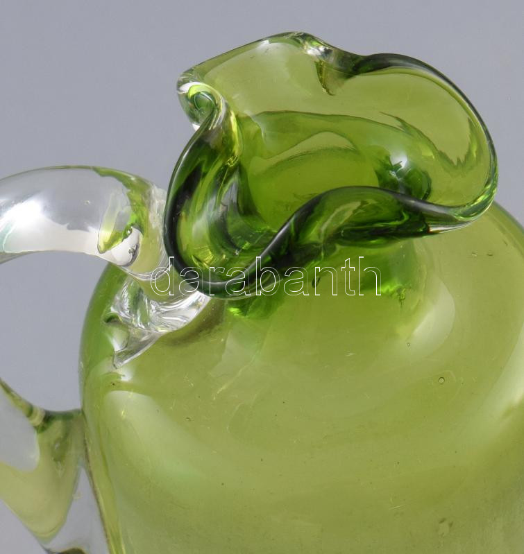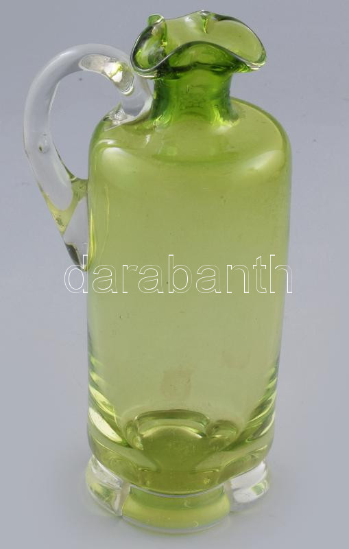 Színezett üveg füles váza, jelzés nélkül, m: 19 cm https://www.darabanth.com/de/472-Fernauktion/472.0/Porzellan-Keramik-Glass/Glaser~1000008/Szinezett-uveg-fules-vaza-jelzes-nelkul-m-19-cm~II3177706