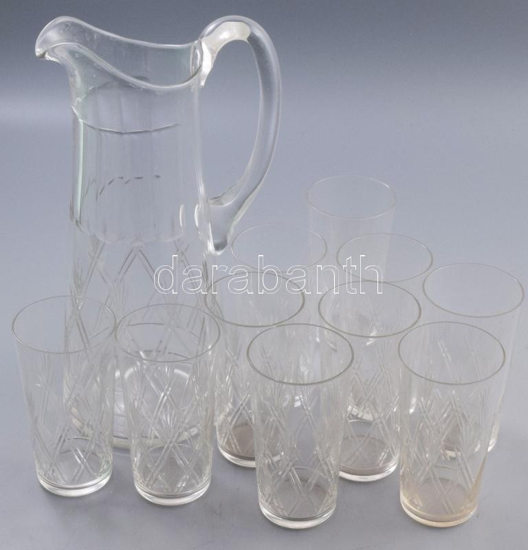 Vizes kancsó 10 pohárral, Metszett üveg, hibátlan 30 cm, 13 cm https://www.darabanth.com/de/472-Fernauktion/472.0/Porzellan-Keramik-Glass/Glaser~1000008/Vizes-kancso-10-poharral-Metszett-uveg-hibatlan-30-cm-13-cm~II3197823