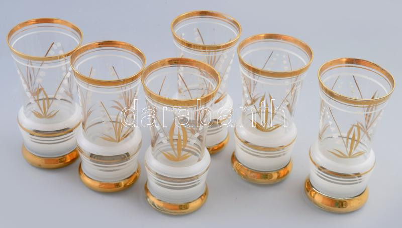 Beschreibung: cca 1900, 6 darab aranyozott festett pohár, kopással, m: 15 cm