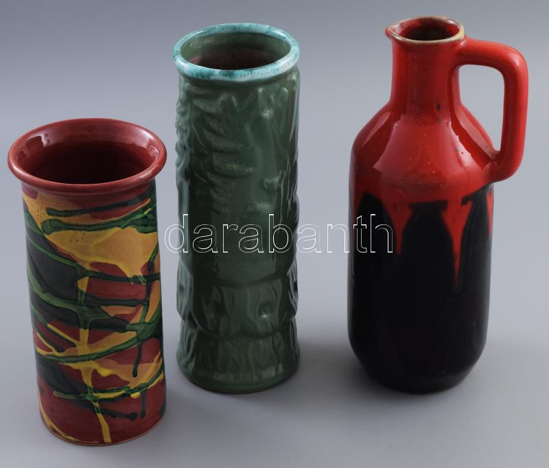 Beschreibung: 3 darab retro váza, közte jelzett, m: 19-25 cm