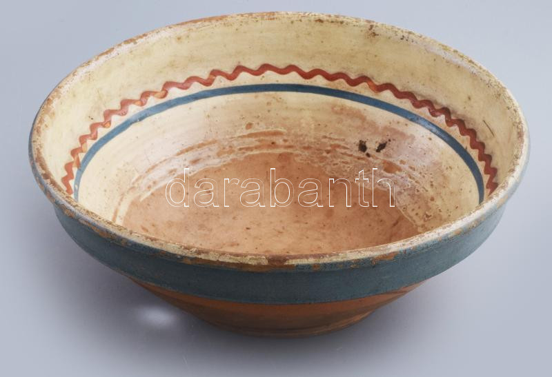 Formás tál. Alföld, 19. sz. második fele, lyukkal, d: 28 cm, m: 10,5 c... https://www.darabanth.com/de/472-Fernauktion/472.0/Porzellan-Keramik-Glass/Keramiken~1000005/Formas-tal-Alfold-19-sz-masodik-fele-lyukkal-d-28-cm-m-10-5-cm~II3195090
