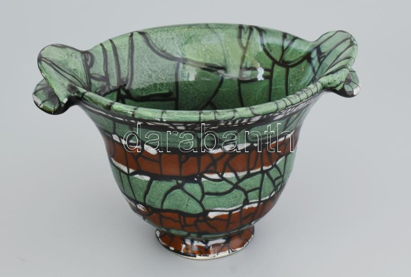 Beschreibung: Gorka Géza Iparművészeti Vállalatos váza, mozaikszerű mázazással, minimális kopottsággal, m: 13,5 cm