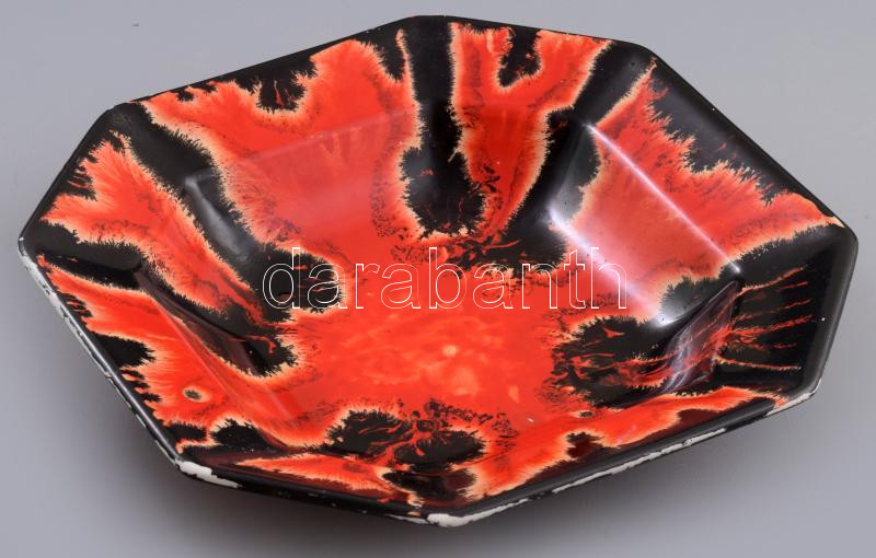 Beschreibung: Gránit ritka festésű kínáló, jelzett, kopással, 34x34 cm