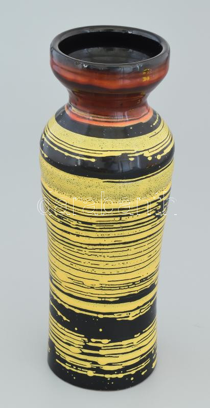 Beschreibung: Iparművész sárga-fekete váza. Jelzés nélkül, mázkopással, m: 28 cm