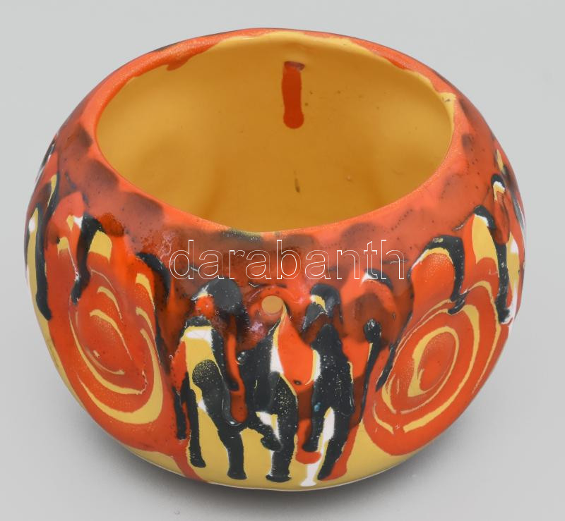 Beschreibung: Retro iparművész függőkaspó. Jelzés nélkül, szájánál kis repedéssel, d: 15,5 cm