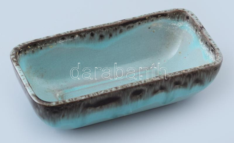 Beschreibung: Türkiz mázas bonsai tál. Jelzett, mázkopással, 18x9 cm