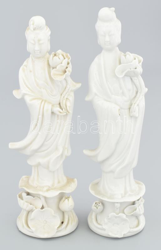 Beschreibung: 2 darab Blanc de Chine de Gayin figura, jelzett, sérüléssel, m: 20 cm