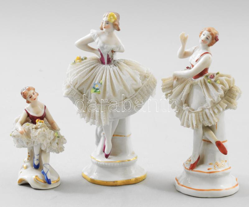 Beschreibung: 3 darab sérült német porcelán balerina, m: 15 cm alatt