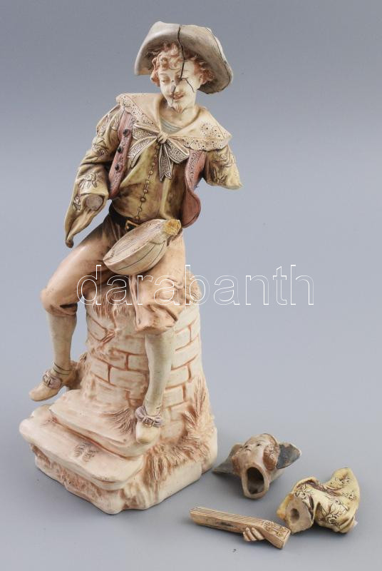 Beschreibung: Antik német porcelán figura, cca 19. sz., jelzett, törött, m: 30,5 cm