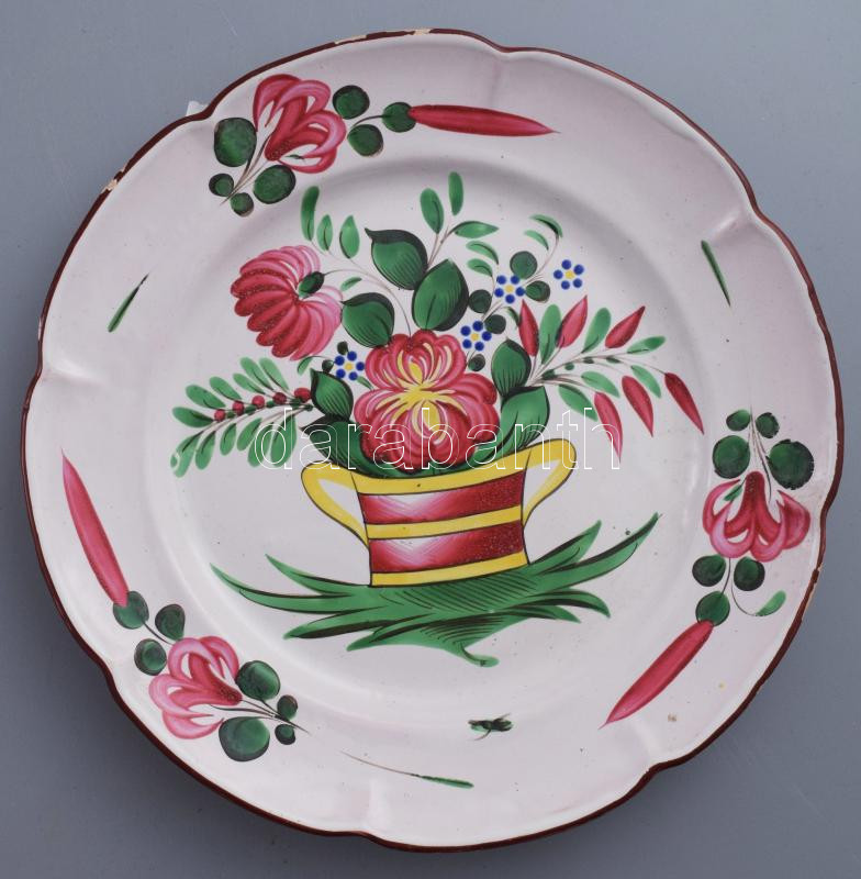 Antik olasz virágcsokor mintás fajansz dísztányér, cca 1900, mázhibákk... https://www.darabanth.com/de/472-Fernauktion/472.0/Porzellan-Keramik-Glass/Porzellan~1000007/Antik-olasz-viragcsokor-mintas-fajansz-disztanyer-cca-1900-mazhibakkal-d-23-5-cm~II3195507