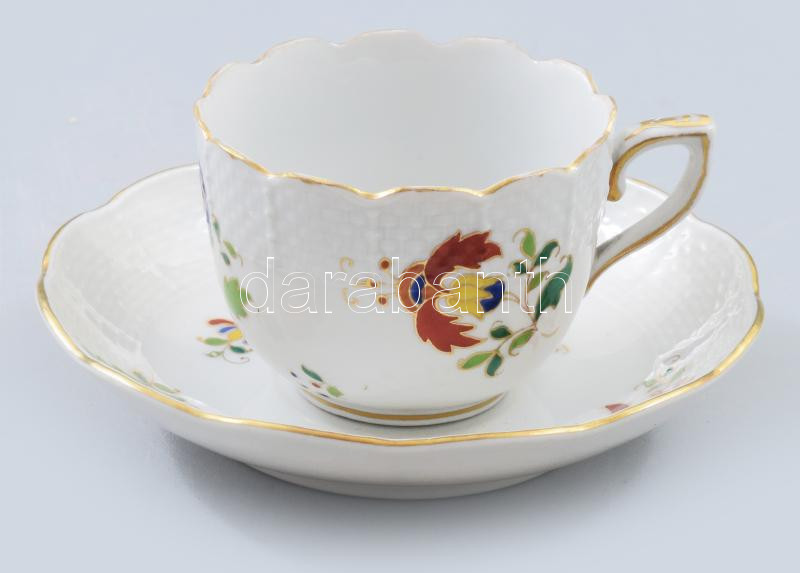 Beschreibung: Herendi Magyaros mintás csésze alátéttel, GUNDEL felirattal, alátét repedt.
