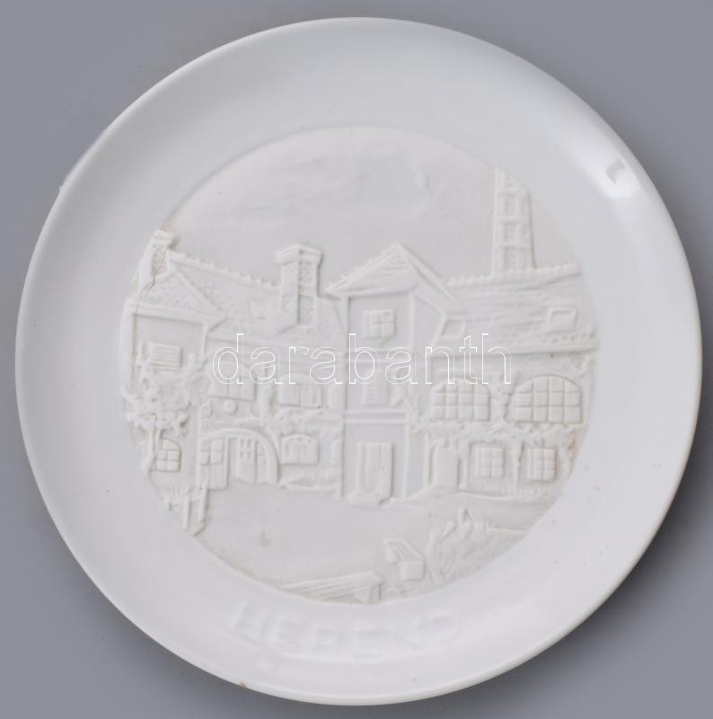 Beschreibung: Herendi Porcelángyár litofán emléktányér, fehér mázas/biszkvit, jelzett, d: 18,5 cm