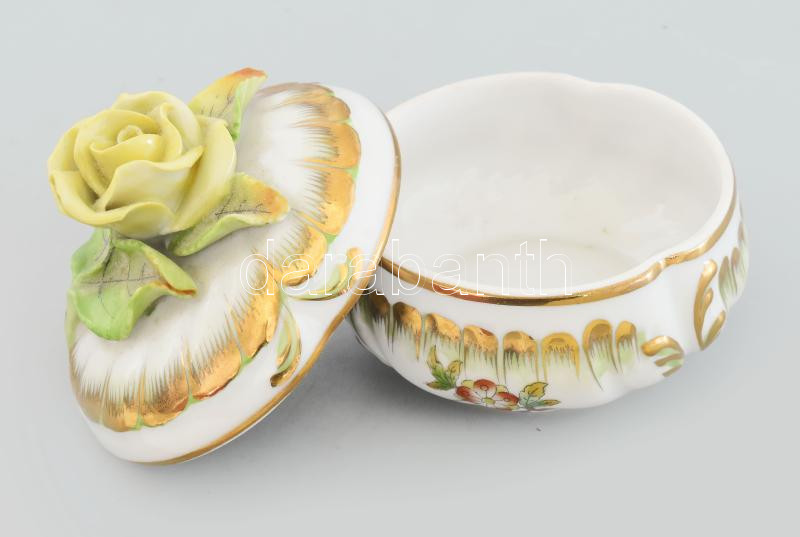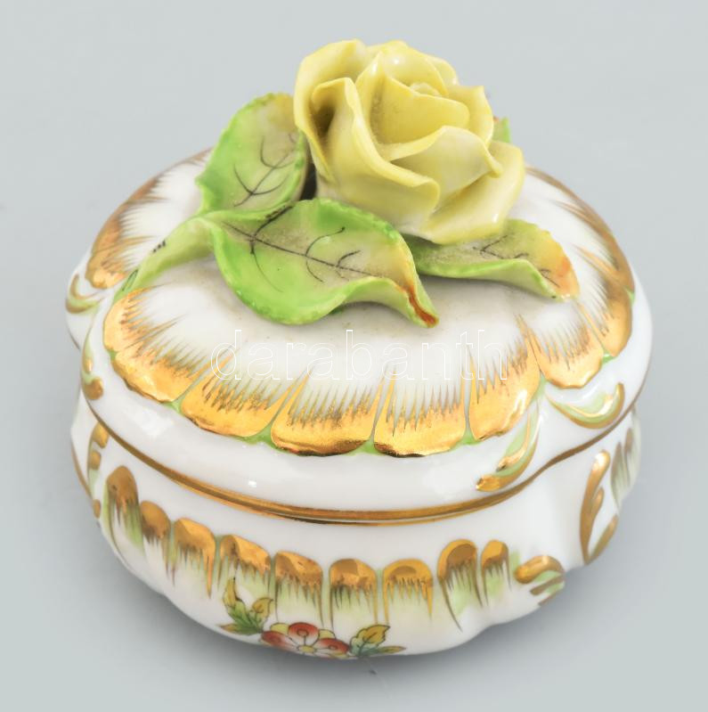 Herendi Viktória mintás bonbonier. Leveles rózsa fogóval, jelzett, min... https://www.darabanth.com/de/472-Fernauktion/472.0/Porzellan-Keramik-Glass/Porzellan~1000007/Herendi-Viktoria-mintas-bonbonier-Leveles-rozsa-fogoval-jelzett-minimalis-kopassal-d-8-cm~II3197068