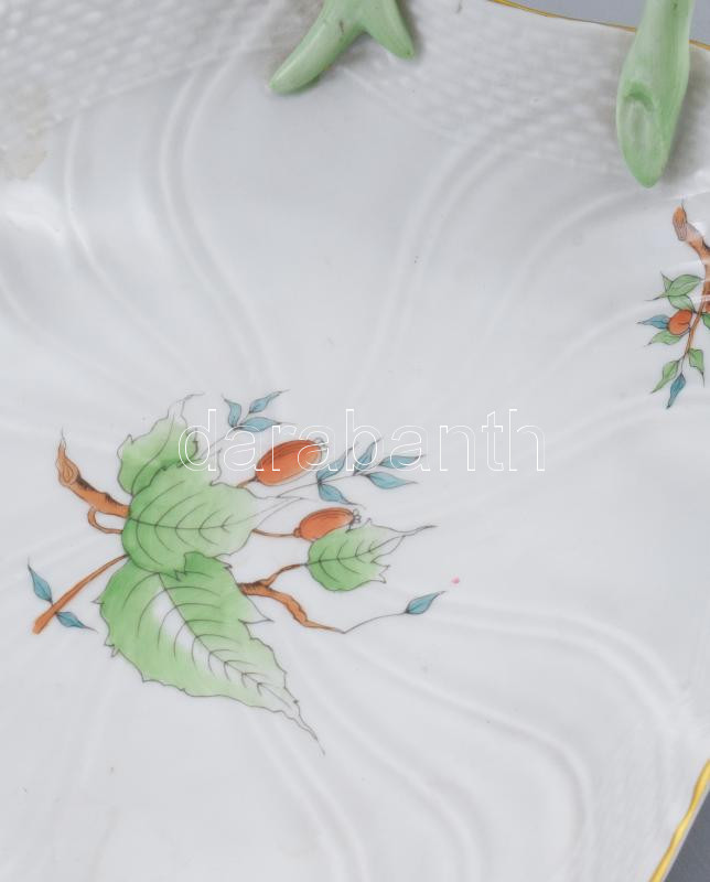 Beschreibung: Herendi hecsedli mintás levél alakú kínáló. 2. oszt. jelzéssel, 24x19 cm