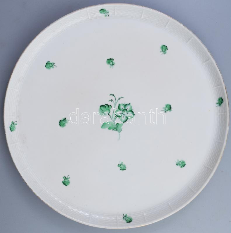 Herendi zöldvirágos tortatál. 2. oszt. jelzéssel, kopással, d: 32 cm https://www.darabanth.com/de/472-Fernauktion/472.0/Porzellan-Keramik-Glass/Porzellan~1000007/Herendi-zoldviragos-tortatal-2-oszt-jelzessel-kopassal-d-32-cm~II3194644