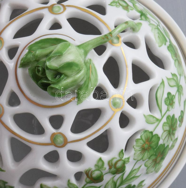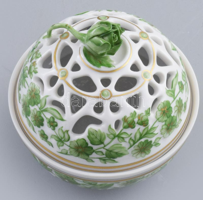 Hollóházi áttört bonbonier. Jelzett, hibátlan, m: 9,5 cm https://www.darabanth.com/de/472-Fernauktion/472.0/Porzellan-Keramik-Glass/Porzellan~1000007/Hollohazi-attort-bonbonier-Jelzett-hibatlan-m-9-5-cm~II3193544
