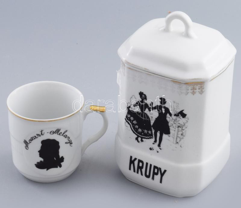 Beschreibung: Meinl kávés csésze, valamint porcelán kávé tartó edény. 20 cm Matricás, jelzett, kopásssal
