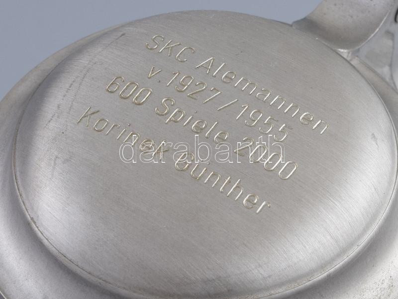 Beschreibung: Schrobenhausen porcelán sörös korsó ón fedéllel 20 cm