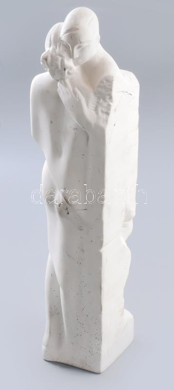Beschreibung: Világhy Árpád (1960-): Szerelmesek, biszkvit porcelán szobor, címkével jelzett, kopással, m: 37 cm