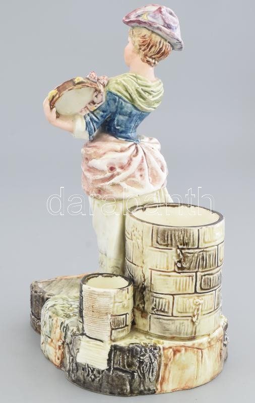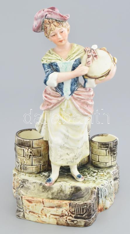 Beschreibung: Zenélő nő figurás asztaldísz váza. cca 19. sz. vége, sorszámozott, sérüléssel, m:26 cm