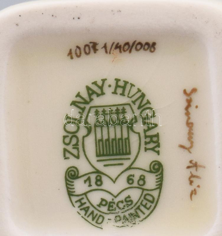Zsolnay négyoldalas váza. Jelzett, hibátlan (mázrepedéssel), m: 15 cm https://www.darabanth.com/de/472-Fernauktion/472.0/Porzellan-Keramik-Glass/Porzellan~1000007/Zsolnay-negyoldalas-vaza-Jelzett-hibatlan-mazrepedessel-m-15-cm~II3199420