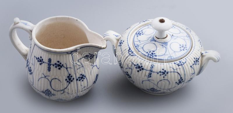 Beschreibung: cca 1900, Sarreguemines tejkiöntő és cukortartó, jelzett, sérült, pótolt, m: 11 cm