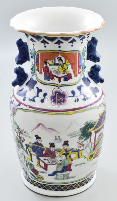 Beschreibung: cca XX. sz. első fele, Kína, kézzel festett váza. Jelzett, alján repedésvonalakkal, m: 34,5 cm