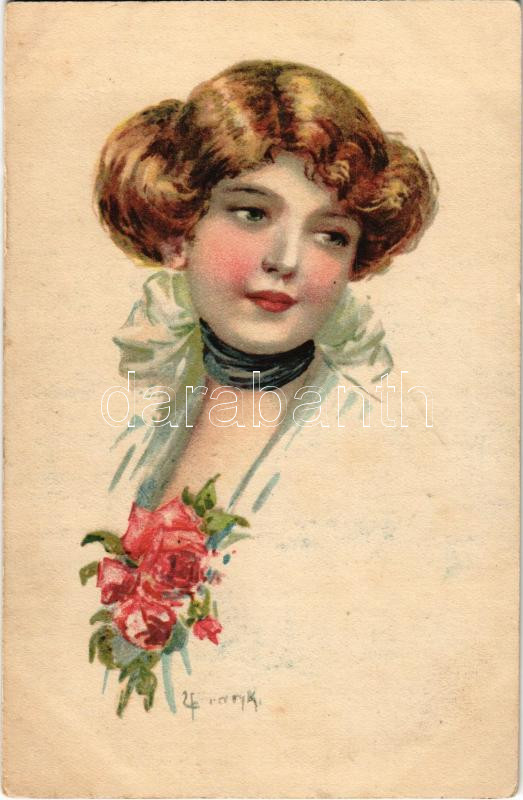 Lady art postcard with roses. A. R. & C.i.B. No. 1117/4. (EK) https://www.darabanth.com/de/473-Fernauktion/473.0/Ansichtskarten/Damen~2000031/Lady-art-postcard-with-roses-A-R-CiB-No-11174-EK~II3209701
