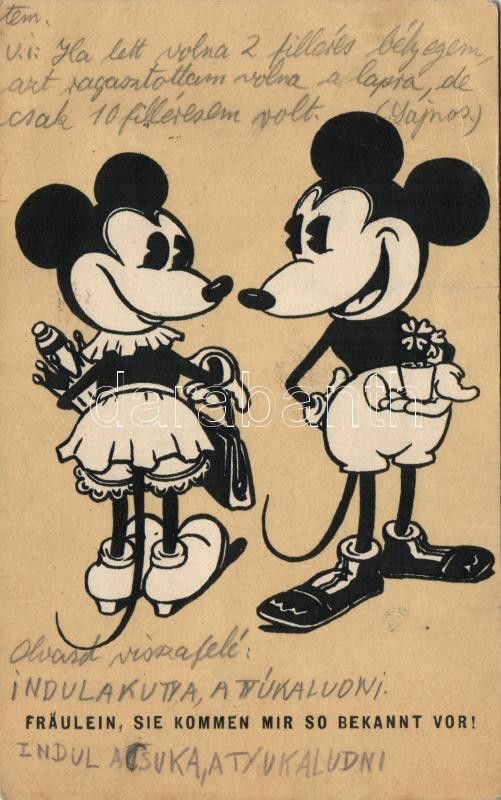 Beschreibung: Fräulein, Sie kommen mir so bekannt vor! Von Walter E. Disney / Mickey and Minnie Mouse (apró lyuk / tiny pinhole)
