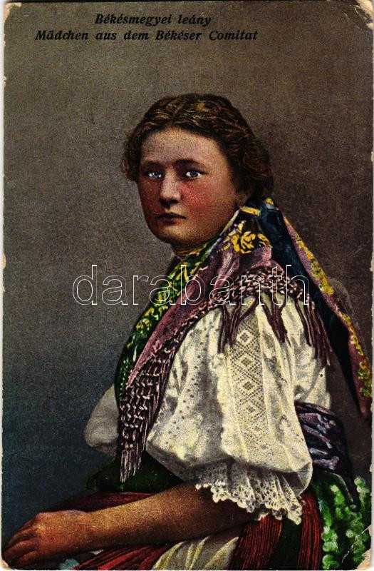 1917 Békésmegyei leány, magyar folklór. Vasúti levelezőlapárusítás 1916. Erdélyi udvari fényképész felvétele / Mädchen aus dem Békéser Comitat / Hungarian folklore (Rb)