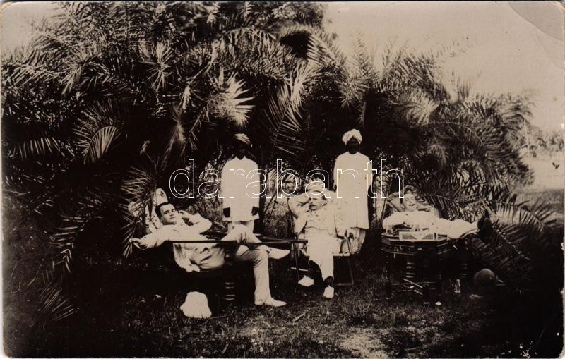 Beschreibung: India, angol imperialista urak és indiai szolgák / British Imperialist gentlemen with Indian servants. photo (EK)
