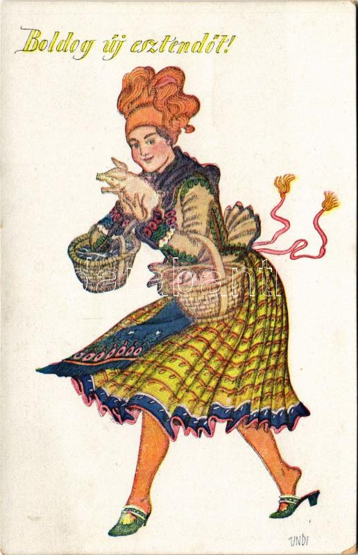 Boldog új esztendőt / New Year greeting art postcard, lady with pig, H... https://www.darabanth.com/de/473-Fernauktion/473.0/Ansichtskarten/GruC39Fkarten-Feste~2000057/Boldog-uj-esztendot-New-Year-greeting-art-postcard-lady-with-pig-Hungarian-folklore-s-Undi-Ma~II3207071