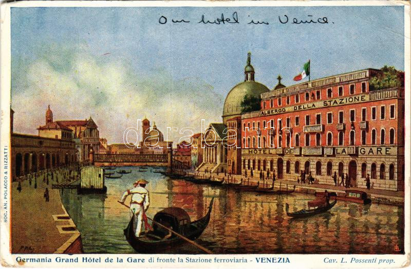 Venezia, Venice; Germania Grand Hotel de la Gare di fronte la Stazione... https://www.darabanth.com/de/473-Fernauktion/473.0/Ansichtskarten/Italien~2000108/Venezia-Venice-Germania-Grand-Hotel-de-la-Gare-di-fronte-la-Stazione-ferroviaria-hotel-railway-~II3208259